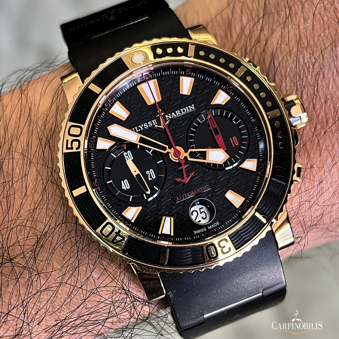 O Ulysse Nardin Marine Diver Chronograph é inspirado no universo marítimo e na precisão necessária para enfrentar as profundezas. Lançado em 2020, combina tradição relojoeira e tecnologia moderna, mantendo o DNA náutico que caracteriza a marca desde o século XIX.
